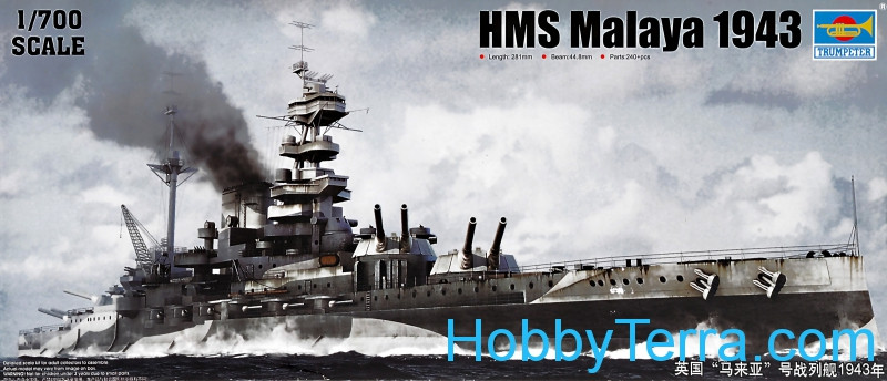 1:700级的战舰HMS马来亚,1943年