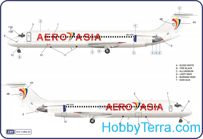 1/144比例DC-9-51客机塑料模型(AMP OvT套件)(Amodel编号4-001-01) 本套装包含: 零件板件 1个透明塑料框架(座舱盖) 水贴纸 模型涂装方案 详细说明书 胶水、油漆和模型支架需另购