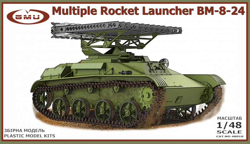 1/48スケール BM-8-24 多連装ロケットランチャー プラモデル (GMU No.48010) セット内容: プラスチックパーツ付きランナー1個 3Dパーツ エッチングパーツ 塗装用図案 詳しい説明書 接着剤と塗料は付属しません